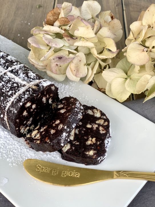 Puoi decorarlo anche con dello spago, come vedi in foto, per simulare ancora meglio l'effetto 'salame'.