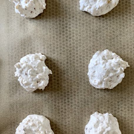 Mescola il composto con un cucchiaio dal basso verso l'alto per non smontarlo e ricava dei biscotti con il cucchiaio stesso. VEDI FOTO