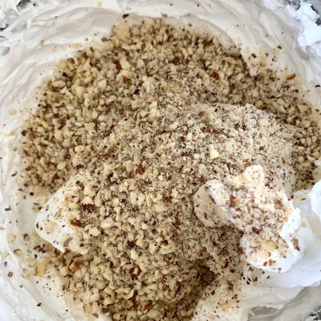 Aggiungi ora le nocciole che avrai tritato in un mixer (non troppo fini ma neanche troppo grosse) VEDI FOTO