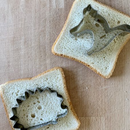 Prendi 8 fette di pancarrè, 4 lasciale tal quali e mettile sulla leccarda del forno rivestita con carta da forno.