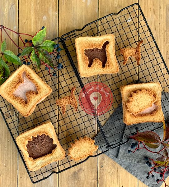 Nelle altre 4 invece, dovrai riprodurre le forme degli animali che desideri. Io ho utilizzato dei taglia biscotti a forma di gatto e di riccio. VEDI FOTO