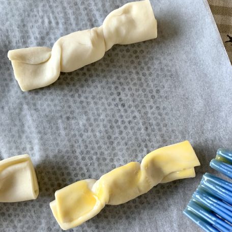 Srotola il rettangolo di sfoglia e ricava 16 rettangoli con un coltello VEDI FOTO