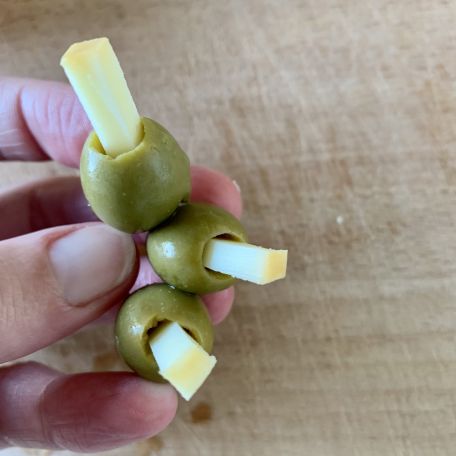 Inserisci i bastoncini di scamorza all'interno delle olive VEDI FOTO