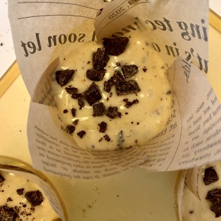 Versa l'impasto nei pirottini e cospargi sulla superficie del cioccolato VEDI FOTO