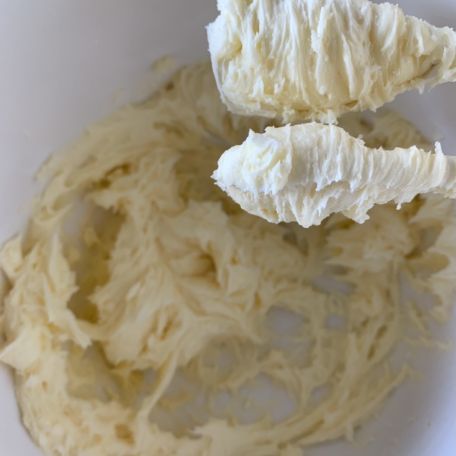 Inizia lavorando con le fruste il burro e lo zucchero a velo insieme, fino ad ottenere un impasto cremoso VEDI FOTO