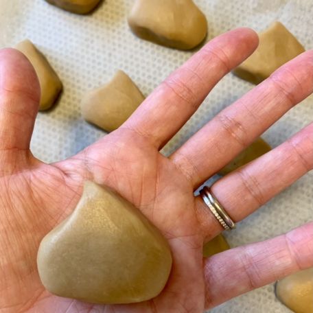 Con le mani, forma delle palline grandi come delle noci e sagomale a forma di castagna VEDI FOTO