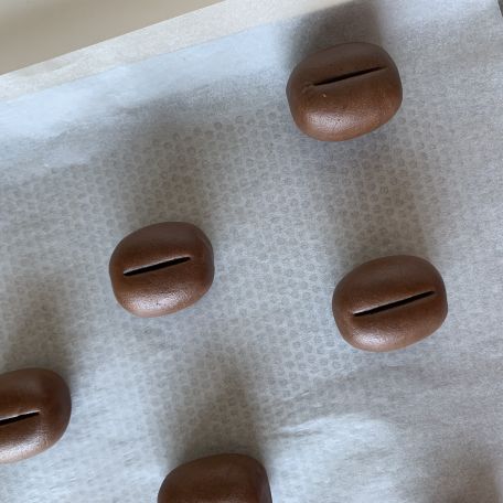 Forma ora i chicchi di caffè che andrai a posizionare su una teglia da forno, rivestita con carta da forno.