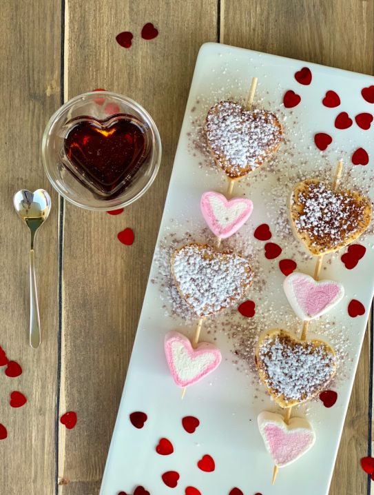 Una volta ottenuti i cuori, infilali sullo spiedino, alternandoli con marshmallow a forma di cuore.