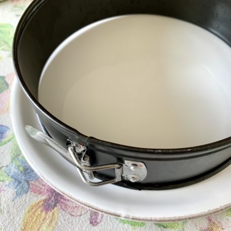 Prendi uno stampo a cerniera e posiziona solo l'anello direttamente sul piatto o sul vassoio che utilizzerai per servire la torta VEDI FOTO
