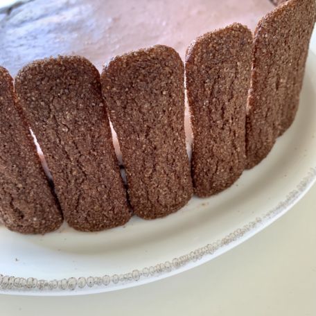 Posiziona i pavesini intorno alla torta VEDI FOTO e fai girare uno spago o un fiocco attorno per evitare che possano muoversi