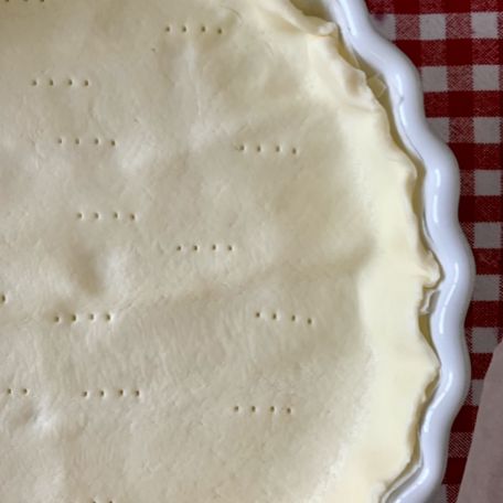 Rivesti una tortiera con il primo rotolo di pasta brisé mantenendo la carta forno al di sotto