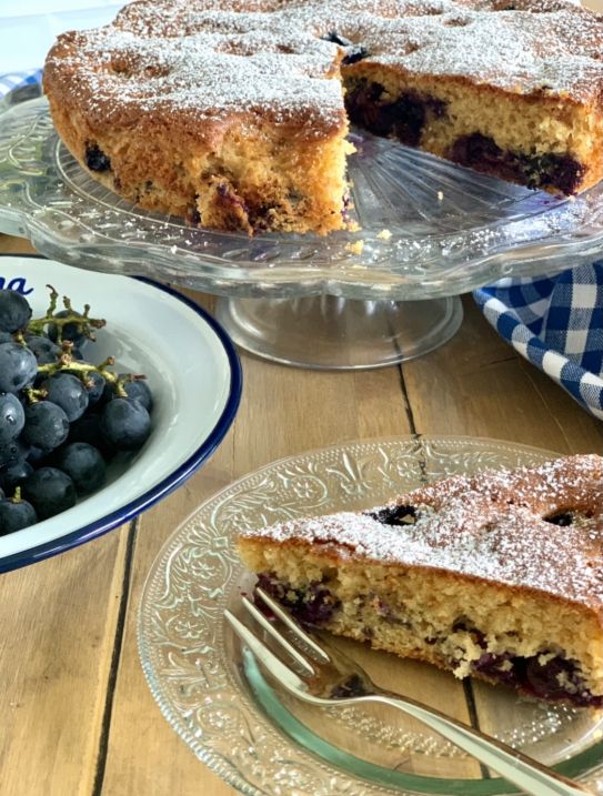 Adagia i chicchi di uva fragola sopra all'impasto e con le dita, spingine alcuni, leggermente sotto