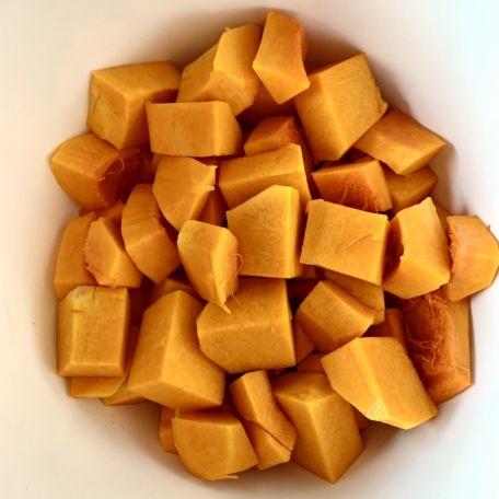 Pulisci la zucca e le patate riducendole in tocchetti di 2/3 centimentri VEDI FOTO