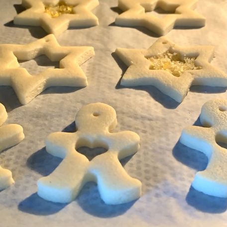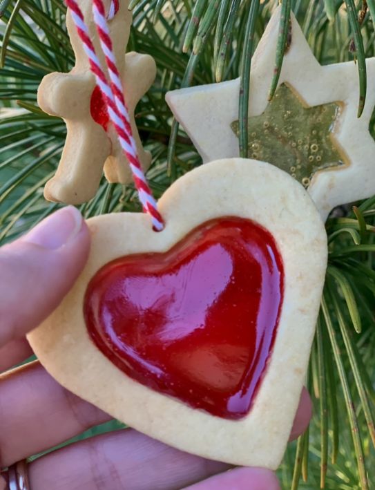 Una volta creata la forma, con un taglia biscotti identico ma più piccolo, ricava la stella interna e il cuore intero VEDI FOTO