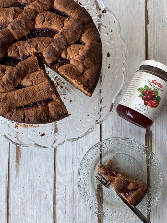 Una volta terminata la base versa sopra la marmellata di mirtilli rossi avendo l'accortezza di lasciare uno spazio di circa 1 cm dal bordo
