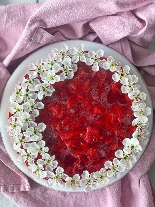 Io l'ho decorata con una cascata di fiori di ciliegio che trovo siano adorabili e molto simili a quelli di fragole