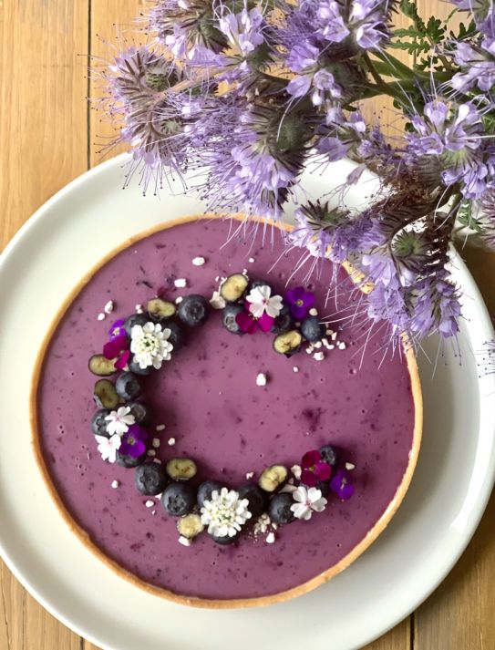Quando è tutto pronto non ti resta che prendere la base della crostata dal frigorifero e versare all'interno la panna cotta ai mirtilli