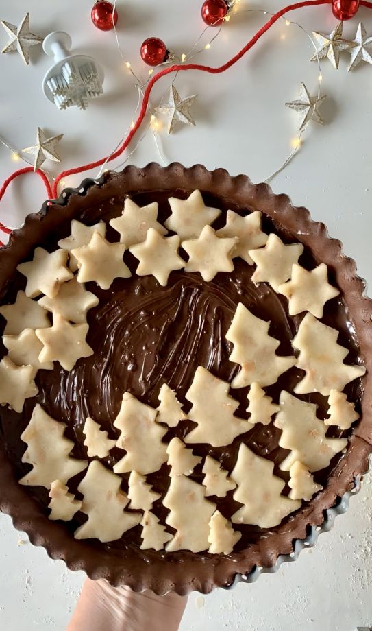Decora la crostata facendo un bosco di alberi e un cielo di stelle