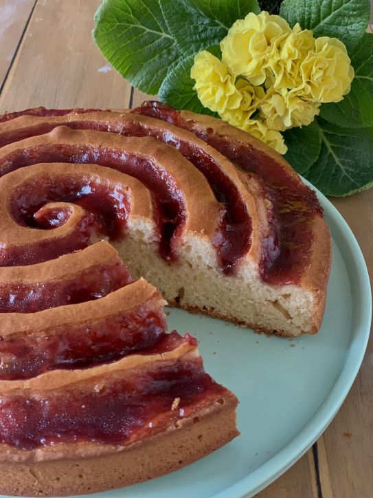 Metti la marmellata in una sac a poche con bocchetta liscia e crea la spirale sull'impasto partendo dal centro