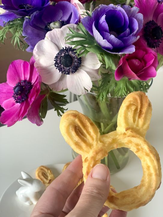 Spennella con del burro sciolto i coniglietti churros e cospargi dello zucchero sulla superficie