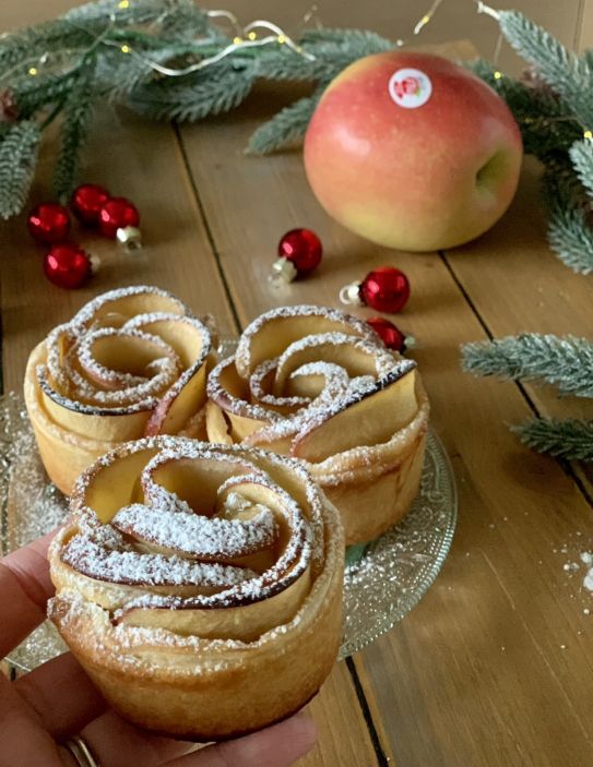 Adagiate le fette di mela una sopra l'altra, come potete vedere nel video e arrotolate la sfoglia con le mele fino a formare le rose