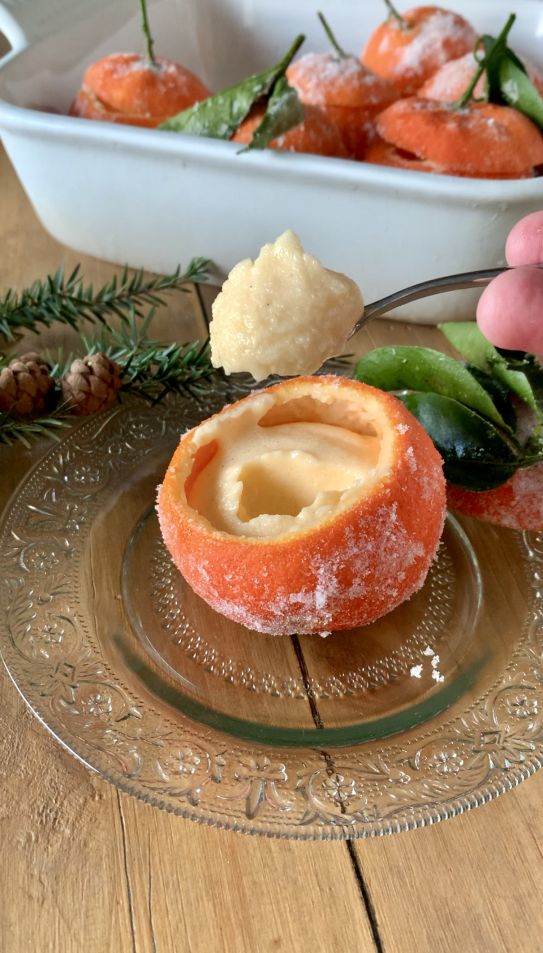 Riempite ora i gusci di mandarino e richiudeteli con la loro calotta