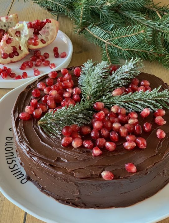 Decoratela con chicchi di melagrana e un rametto di abete brinato