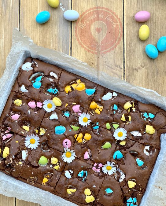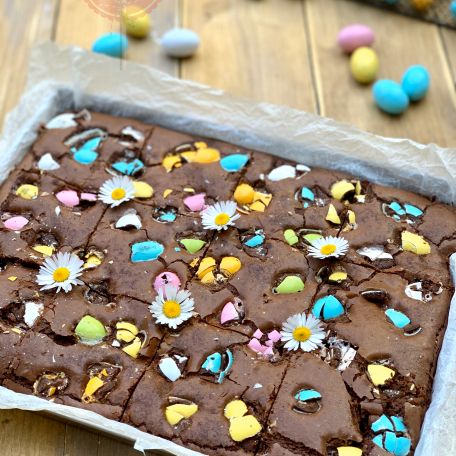 La decorazione tutta colorata farà in modo che questi brownies saranno adatti al periodo pasquale.