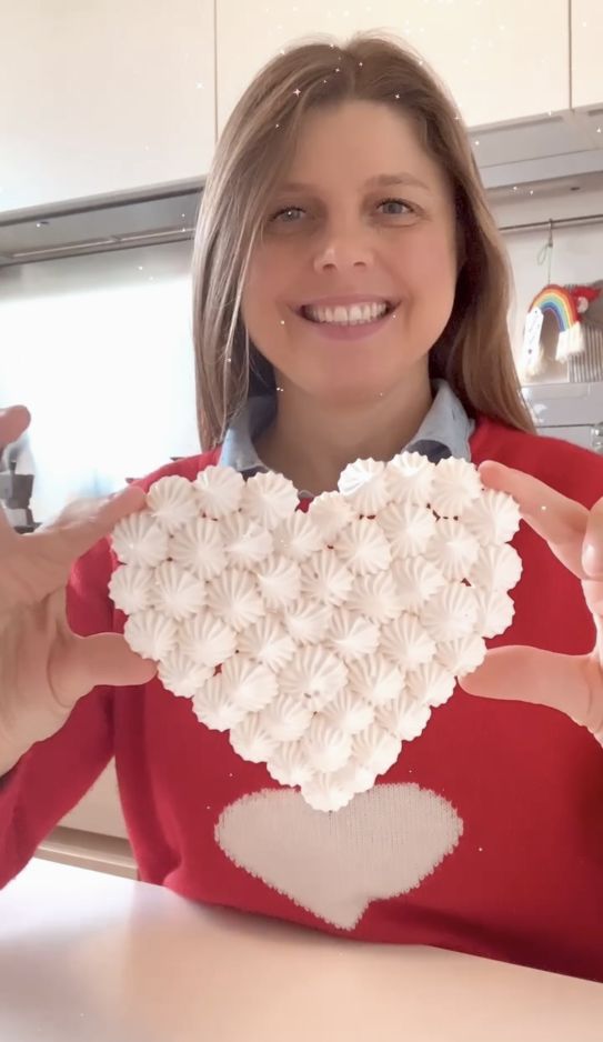 Mettete il composto in una sac a poche e create le meringhe cuore iniziando dal bordo e proseguendo verso l'interno
