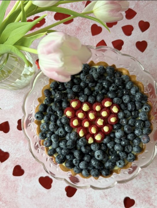 Decorate con i mirtilli nella parte esterna e con i lamponi al centro del cuore