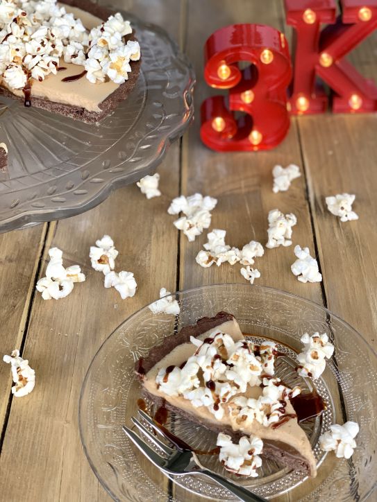 Prendere il guscio di frolla e riempirlo di caramello, ricoprire con la ganache di caramello mou e cospargere con pop corn salati (che potete acquistare già pronti o fare al momento) e decorare con fili di caramello salato.