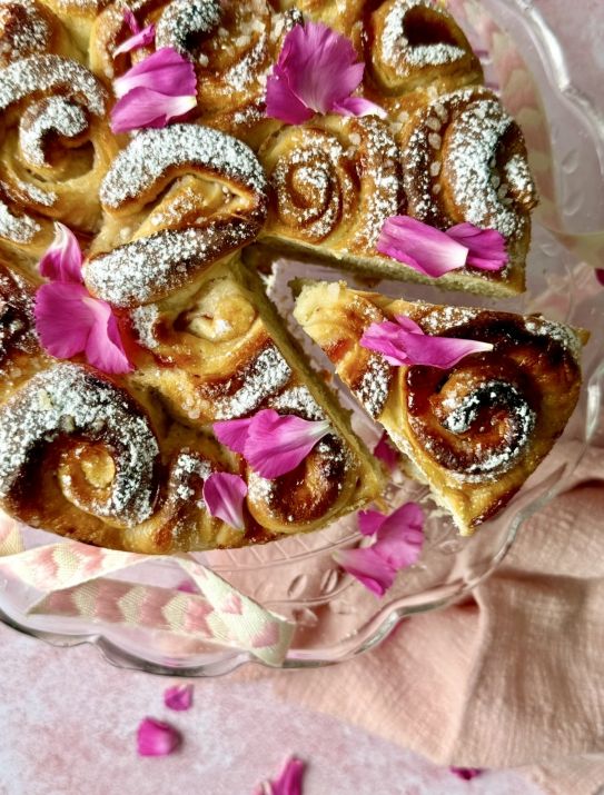 Una volta che la torta delle rose sarà lievitata, cuocetala in forno statico per circa 40/45 minuti a 180 gradi fino a quando la superficie risulterà dorata