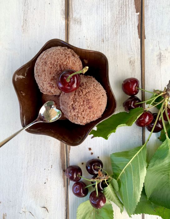 Infine frulla insieme le ciligie e i cubetti di latte. A piacimento puoi aggiungere dello zucchero. A me piace di più il sapore della frutta con poco dolcificante.