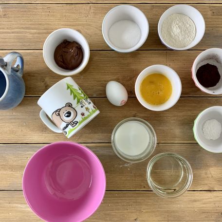 Ingredienti per 2 torte in tazza (assicuratevi di utilizzare mug o tazze che possano andare nel forno a microonde)