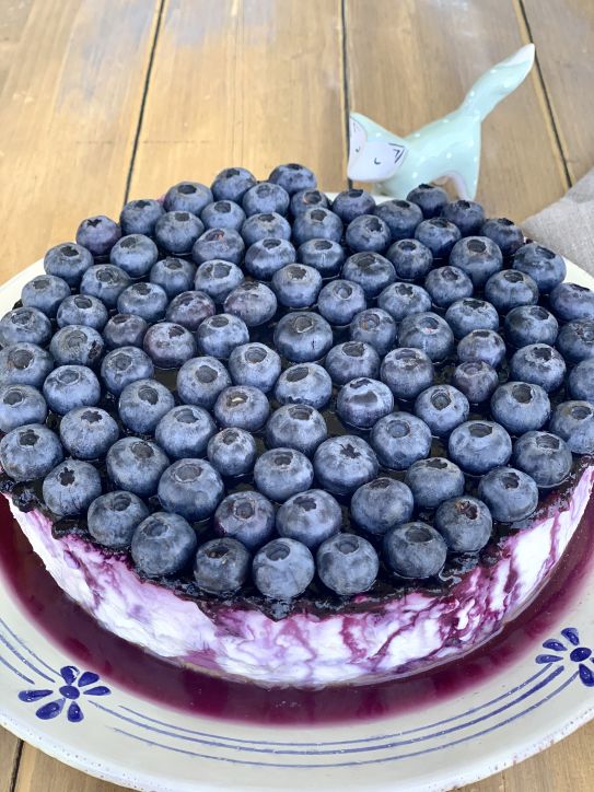 Termina la decorazione con i mirtilli freschi. Parti dall'esterno facendo un cerchio e continua verso l'interno fino a completare e coprire l'intera superficie.