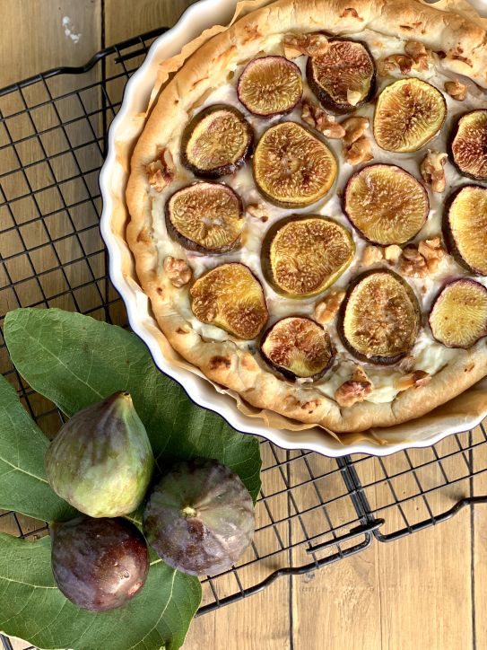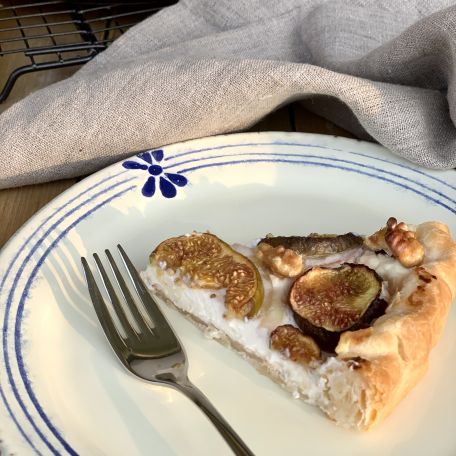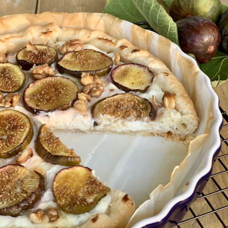 Distribuisci sopra al composto le fette di fichi tagliati come faresti con il salame e cospargi con un pò di noci spezzettate.