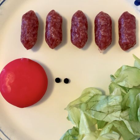 Taglia la punta a 4 salamini e mettili intorno all'hamburger in modo che rappresentino le zampe.