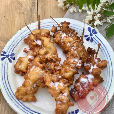 Frittelle molto profumate che ricordano i dolci di una volta, quelli che facevano le nostre nonne con pochi, semplici e genuini ingredienti. Non può passare il mese di maggio senza che faccia queste frittelle almeno una volta. Utilizzo ancora la ricetta che mi ha tramandato la mia nonna, una certezza che non delude mai. Ora tocca a me tramandare a mio figlio questi preziosi ricordi... sorrido ogni volta che siamo nei boschi e lui menziona il nome delle piante che gli ho insegnato. Riconosce quelle che sono commestibili da quelle che invece non lo sono. Le nostre radici sono importanti, e portare avanti le tradizioni credo sia qualcosa di molto prezioso che è un vero peccato non fare.