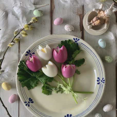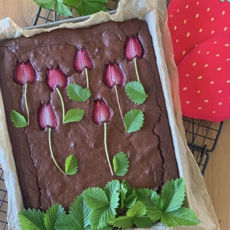 La natura, ormai lo sapete, è fonte di grande ispirazione per me! La primavera è uno sbocciare continuo di fiori, che oltre a regalarmi gioia, mi ispirano le merende. Ecco che ho trasformato una torta tenerina al cioccolato, in un quadro con fragole tagliate a forma di tulipano. E come dico spesso, ci vuole poco a volte per sorprendere in modo semplice